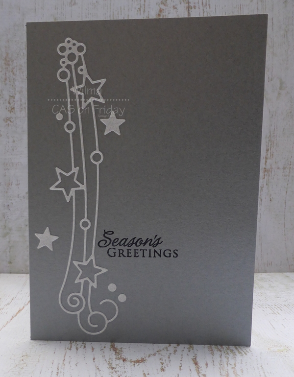 Ik blijf nog even in de kerstsfeer. Bij CAS on Friday hebben we weer een nieuwe uitdaging. We willen graag kaarten zien met sterren. Dit is mijn kaart.